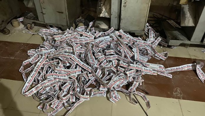 फैक्ट्री में बड़ी मात्रा में सैकड़ों बंडल जर्दा युक्त गुटखा और उसे बनाने वाला सामान, सुपारी और पाउच जब्त किए गए