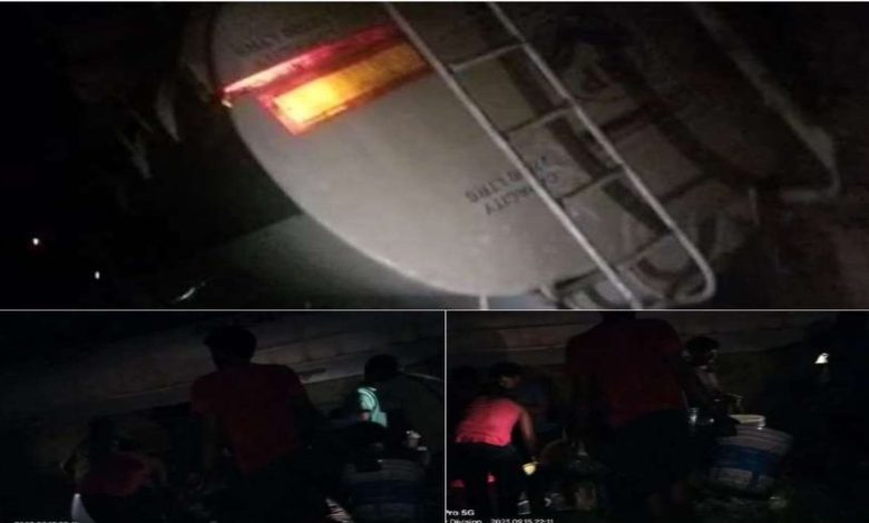 डीजल से भरा टैंकर पलटा, बाल्टी-डिब्बे लेकर Diesel लुटने उमड़े लोग