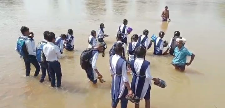खबर का असर…जान जोखिम में डालकर नदी पार करते स्कूली बच्चे, हरकत में आया प्रशासन, गांव पहुंचे अधिकारी