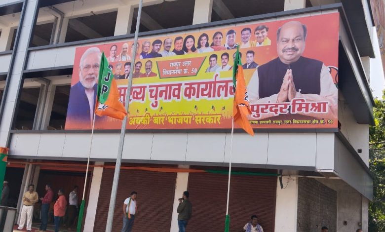 AINS NEWS 24X7 RAIPUR…. उत्तर विधानसभा के भारतीय जनता पार्टी के चुनाव कार्यालय का उद्घाटन संपन्न हुआ, इस मौके पर भारतीय जनता पार्टी के रायपुर सांसद सुनील सोनी उम्मीदवार पुरंदर मिश्रा और कार्यकर्ता बड़ी संख्या में एकत्रित थे। उत्तर विधानसभा के इस चुनाव कार्यालय के उद्घाटन के दौरान ढोल नगाड़े, पटाखे और आतिशबाजी का जोरदार प्रदर्शन किया गया। उद्घाटन समारोह में उम्मीदवार पुरंदर मिश्रा पूरे जोश से लबरेज नजर आए,