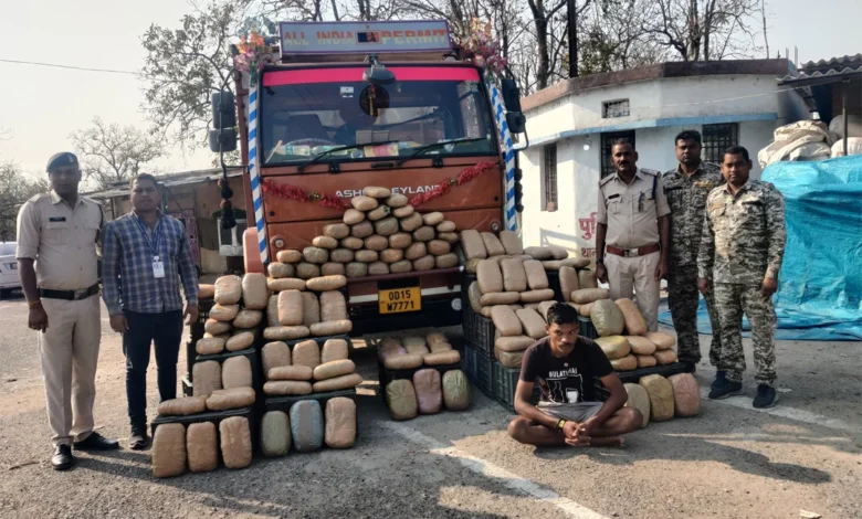AINS NEWS…. पुलिस सरायपाली के मार्गदर्शन मे थाना सिंघोडा एवं सायबर सेल के संयुक्त टीम द्वारा दिनांक 08/03/2024 को मुखबीर सूचना पर उडिसा से छत्तीसगढ की ओर आ रही एक गेरूआ कलर की अशोक लिलेण्ड ट्रक क्रमांक OD15 W 7771 को रोका गया, वाहन मे एक व्यक्ति सवार था पूछताछ करने पर गोल मोल जवाब देने लगा कडाई से पूछताछ करने पर वाहन के डाला मे कैरेट के नीचे गांजा रखकर उडिसा से महाराष्ट्र ले जाना बताया।
