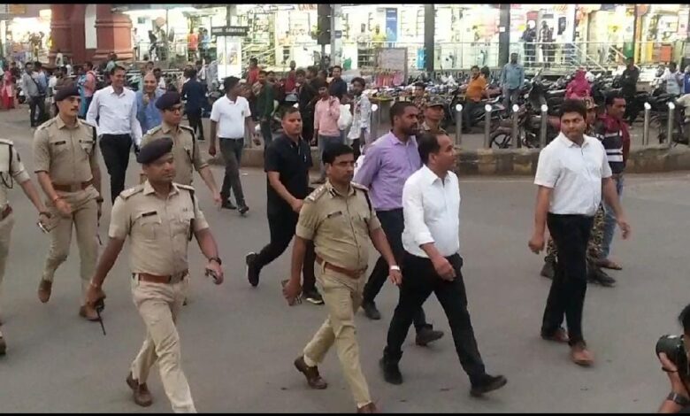 रायपुर पुलिस के सैकड़ों अधिकारियों/कर्मचारियों द्वारा शहर के विभिन्न स्थानों में फ्लैग मार्च निकाला गया