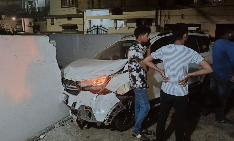 नशे में धुत्त चालक ने गेट को तोड घर में घुसाई कार, टला बडा हादसा