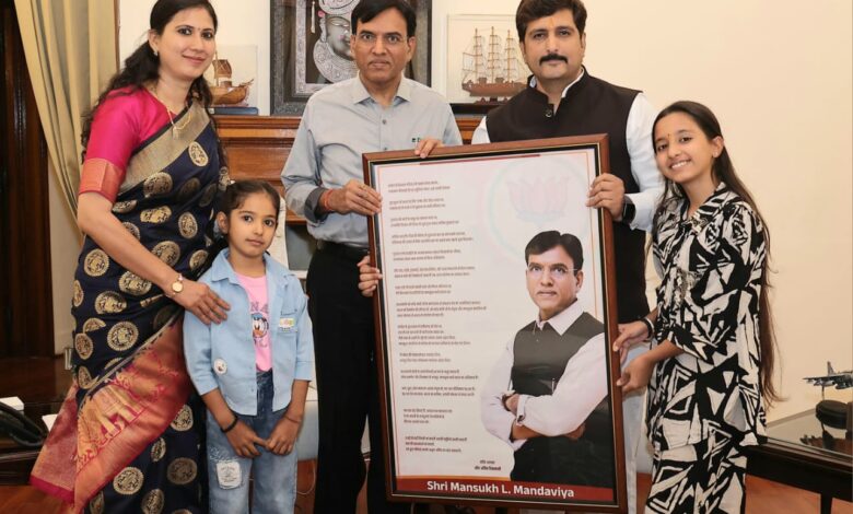 केंद्रीय मंत्री श्री मांडविया से भाजपा प्रदेश मीडिया प्रभारी अमित चिमनानी ने की सपरिवार भेंट