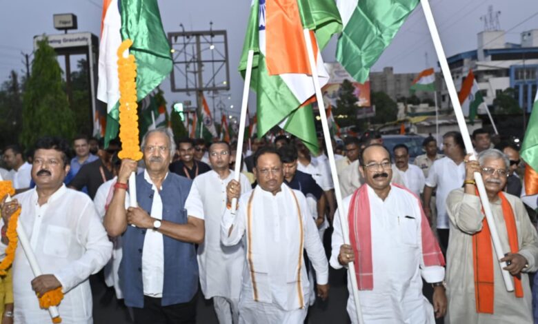 AINS NEWS… मुख्यमंत्री श्री विष्णु देव साय आज राजधानी रायपुर में आयोजित तिरंगा यात्रा में शामिल हुए। उन्होंने कहा कि राष्ट्र की सुरक्षा की जब भी बात आएगी हम सभी एक हैं। देश के, अपने प्रधानमंत्री श्री नरेंद्र मोदी और अपनी सेना के साथ हैं। उन्होंने कहा कि तिरंगा यात्रा में सभी वर्गों के लोग, सेवानिवृत्त सैनिक, समाज सेवी संगठन, आम नागरिक, महिला एवं पुरुष, बच्चों ने बड़ी संख्या में शामिल होकर एकजुटता, देशभक्ति, राष्ट्रीय गौरव का संदेश दिया है।