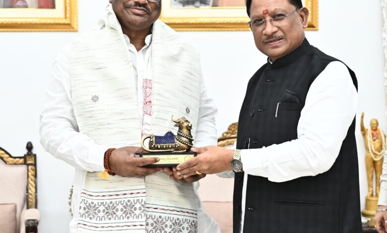 मुख्यमंत्री श्री साय ने श्री उइके का पारंपरिक कोसा वस्त्र और बेल मेटल से निर्मित स्मृति चिह्न भेंट कर आत्मीय स्वागत किया। इस अवसर पर दोनों नेताओं के बीच छत्तीसगढ़ के जनजातीय क्षेत्रों के समग्र विकास, जनजातीय युवाओं के सशक्तिकरण, शिक्षा, स्वास्थ्य, एवं आधारभूत संरचना से जुड़े विषयों पर विस्तार से चर्चा हुई।