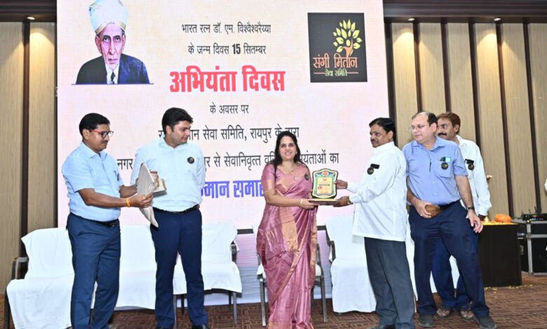 संगी मितान सेवा समिति नगर निगम रायपुर द्वारा अभियंता दिवस पर सेवानिवृत्त अभियंताओं की सेवाओं को सम्मान