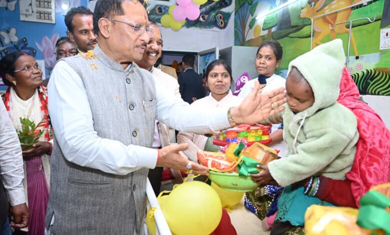 AINS NEWS… मुख्यमंत्री श्री विष्णुदेव साय ने आज सामुदायिक स्वास्थ्य केंद्र फरसाबहार में आयोजित कार्यक्रम के दौरान फरसाबहार के साथ-साथ कुनकुरी एवं मनोरा में स्थापित किए गए पोषण पुनर्वास केंद्रों का शुभारंभ किया। इन तीनों पुनर्वास केंद्रों को 10-10 बिस्तरों की सुविधा के साथ प्रारंभ किया गया है। इनके शुभारंभ के साथ ही जशपुर जिले में पोषण पुनर्वास केंद्रों की संख्या 6 हो गई है। इस दौरान मुख्यमंत्री ने पुनर्वास केंद्रों में भर्ती कुपोषित बच्चों की माताओं से बच्चों के स्वास्थ्य और उनके ईलाज के बारे में जानकारी ली। मुख्यमंत्री इस मौके पर बच्चों के लिए पोषण कीट के साथ खिलौने भी प्रदान किए।