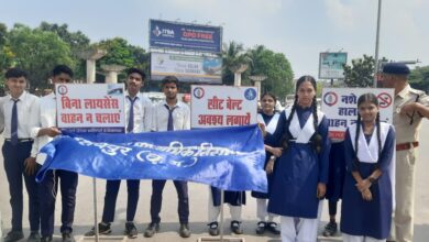 छात्र-छात्राओं ने शास्त्री चौक पर सड़क पर वाहन चालकों को पढ़ाया यातायात नियमों का पाठ